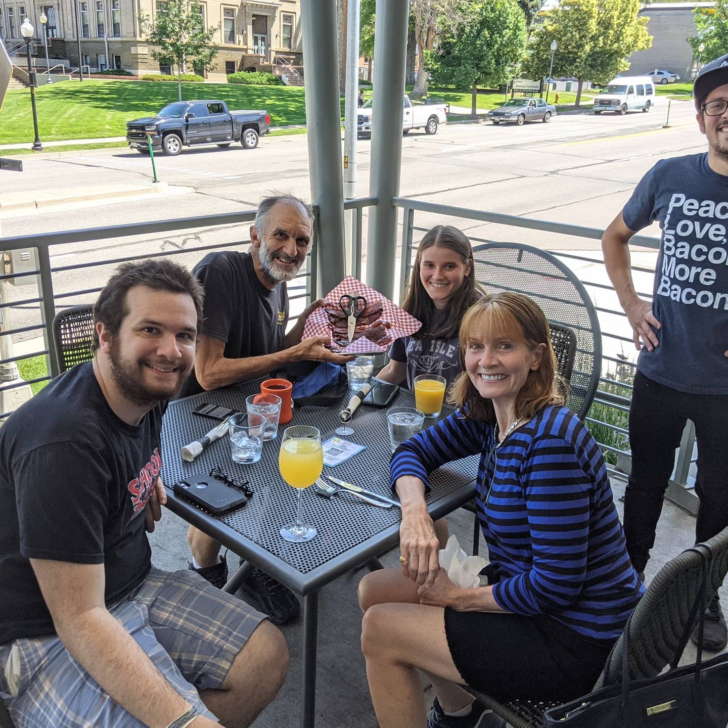 Goodbye and THANK YOU DENVER and the Gammels! What a great and restful visit we had in our niece’s cool, big, beautiful home! Huge shout-out to the Bacon Social House in Littleton where they love dogs (even bringing them their own drinks (-;), and for my bacon lovers, they had 6 delicious different flavors of bacon. For me, the BEST non-meat huevos rancheros I have ever had in my life! Everything was DELICIOUS! Okay, team Shaheen…WESTWARD BOUND!!!!