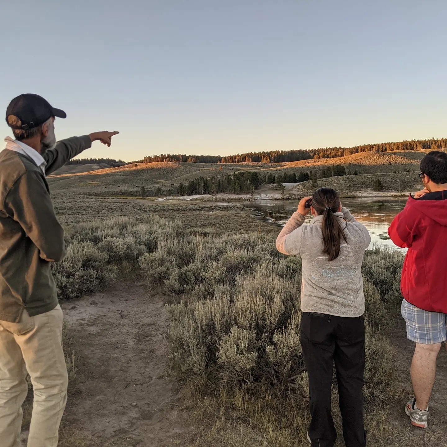 We got up at 5:30 AM and drove to the Lamar Valley to watch the sunrise, and were blessed to connect with incredibly generous animal lovers with telescopes who let us see up close the grizzly bears, a wolf pack, mountain goats, and more in the early morning light. I cried at the beauty of it all. We then drove to Cody, Wyoming where we saw the Cody rodeo, visited the Old Trail Town (that I posted yesterday on Facebook), and ate at Cassie’s Dinner Club circa 1922 that started as a brothel in the old west until prostitution became illegal in Wyoming and Cassie cleverly changed it to a saloon and dinner club. Today we drove to just outside Devil’s Tower national monument, and tomorrow we’ll see the monument and head on to Ernie’s old stomping grounds in the Black Hills. Even this day of driving straight through was beautiful as we went through the Big Horn mountains and Elijah opened my eyes to something he has been trying to get us to understand for the longest time. Taking the time to see, breathe, discover, talk, share, love, and laugh together is changing us all for the better.