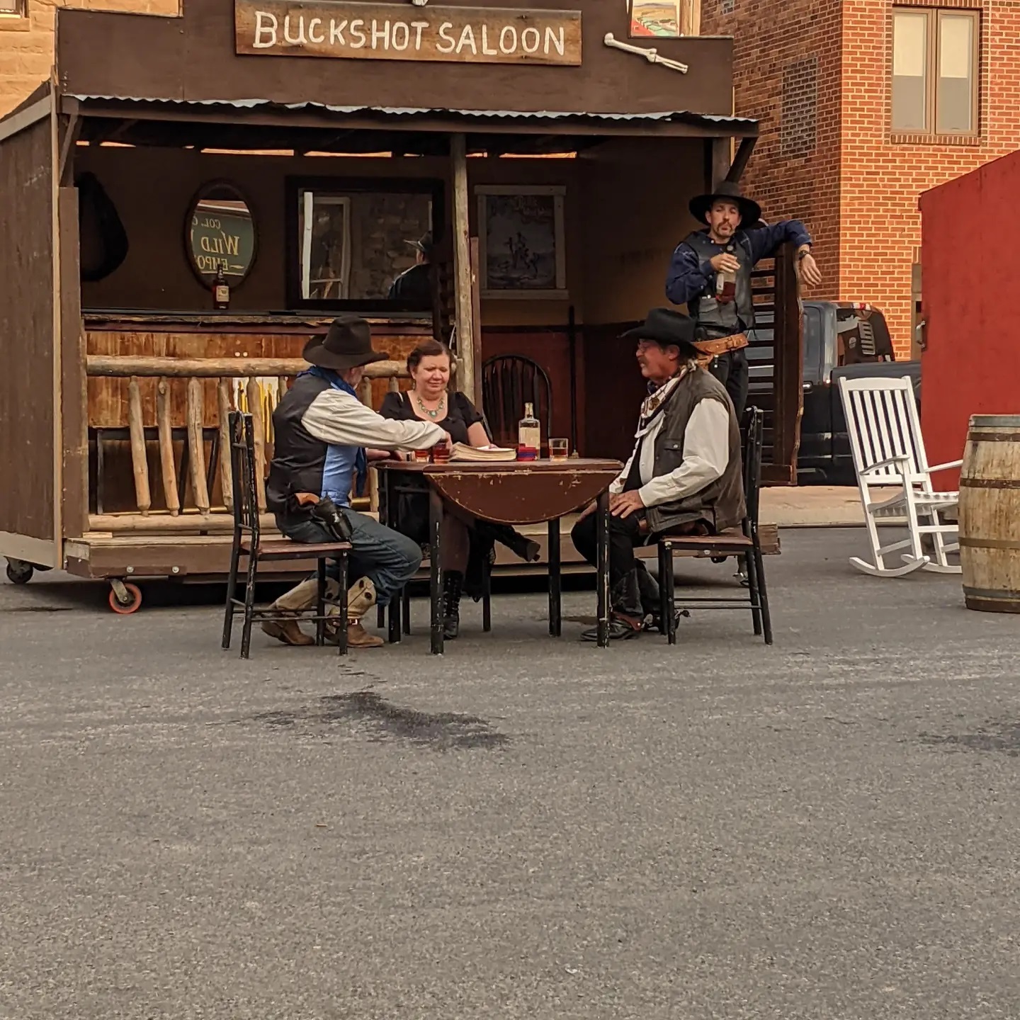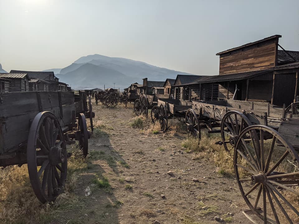 After camping in the woods and driving through Yellowstone with no wifi or cell reception for 2 days, we landed in Cody, Wyoming and these 2 grizzly gunslingers, sporting their cowboy tennis shoes and invisible sharp shooters, duked it out on main street. The Old Trail Town is an authentic western town with the actual cabins and artifacts recovered from that era which includes the