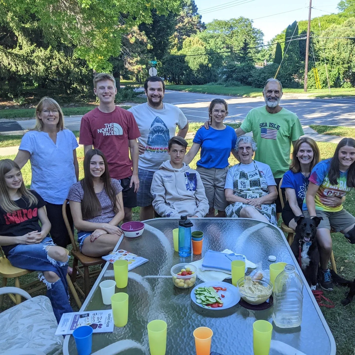…Ernie taped it up, picked up the pipe that fell from the generator and kept going.) Today Ernie’s sweet sister, Connie, and his niece, Rachel, hosted a delicious outdoor picnic with his nephew, Aaron Jacobus and family. Such a joy to see some of our cousins, nieces, and nephews again. Love abounding!