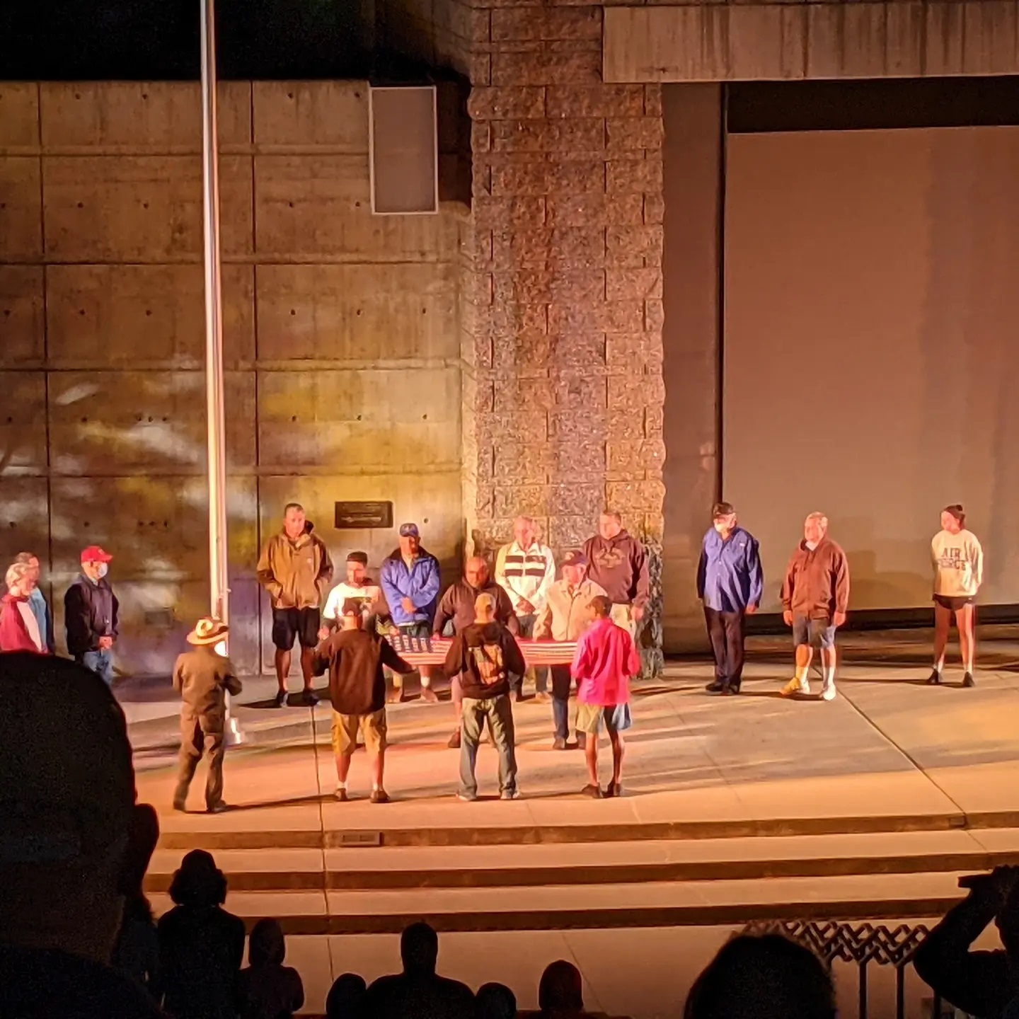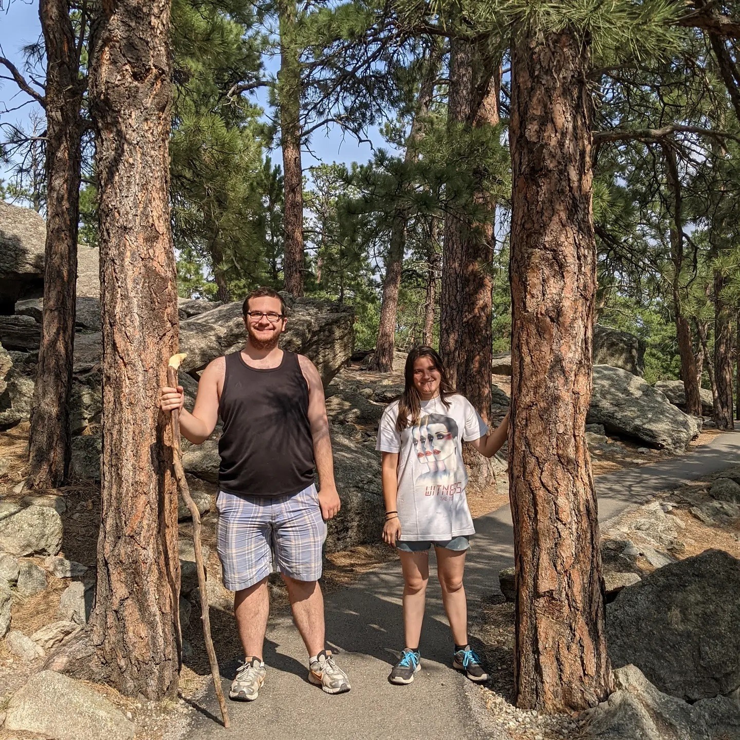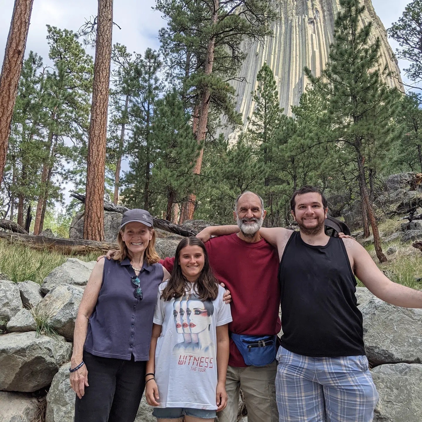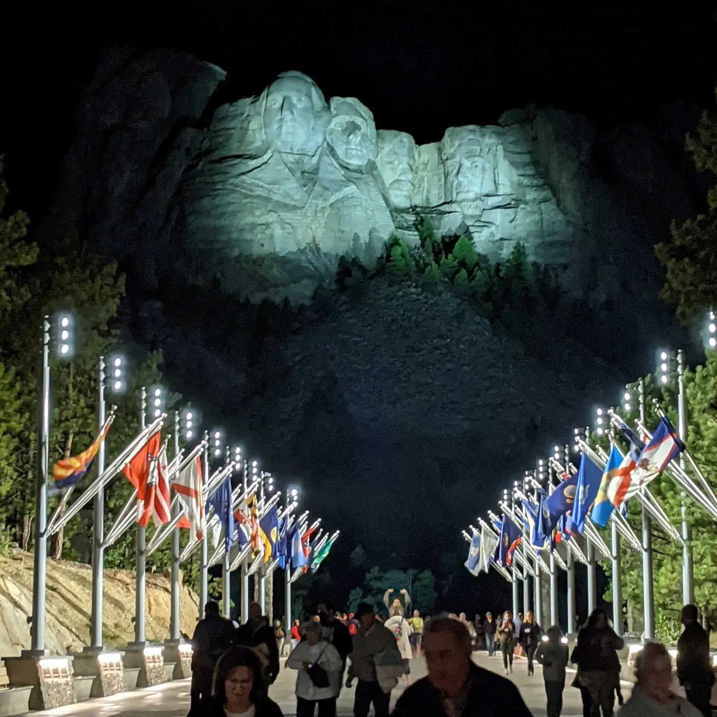 Today we saw 2 beautiful national monuments. Early in the day we walked around Devil’s Tower in Wyoming. We marveled at the unusual rock tower that rose to the sky, smelled vanilla in the bark of the trees, and held our breath as we watched a few brave climbers scale the rock wall toward the top. This evening we went to a truly beautiful ceremony at Mount Rushmore that talked about the hardships suffered and personal sacrifices made by each of those 4 presidents to promote the ideals of freedom, equality, beauty, and a government run by its people. They then played a beautiful short film, ending in the lighting of Mount Rushmore at night and asked that all the veterans in the audience come down onto the stage to help lower and fold the flag for the night. Everyone cheered for and acknowledged those on the stage. I find I am sometimes cautious watching these events, given the volatile nature of our country’s politics these days and my fear of anyone feeling excluded or attacked. Tonight there was a sense of awe, beauty, connectedness, and true appreciation for those values that bring us together in the name of good and something bigger.