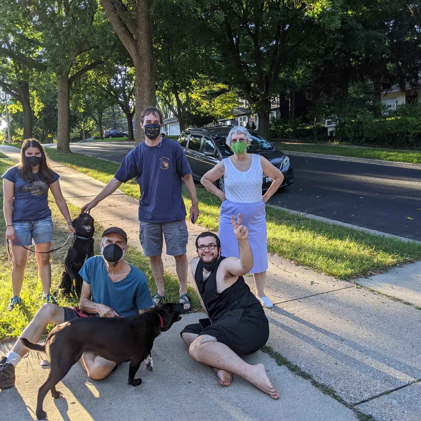 ) Ernie patched up the leaky place with sealant, and we set off to visit his high school guidance counselor and dear friend who first encouraged him to go into the theater. So much love there. We then drove to see the Black Hills Playhouse where Ernie spent 2 summers acting almost 40 years ago. Their season had ended and there was nobody there, but he told us wonderful stories about his adventures at the playhouse while our dogs ran and played, and Skylar rolled in a new doggie perfume left by the bison who roam the area, when nobody was looking. (Surprise! ![]()