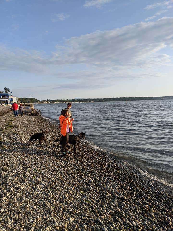 Today was a peaceful, easy, quiet day in paradise. We slept late, visited a fabulous dog park in Blaine, picked blackberries, ate by the bay, and just to keep things interesting, decided to take a hike as the sun was setting. Tatiana is a true nature girl and excellent navigator, so getting back in the dark was a cake walk for her, and actually a bit thrilling for us all.