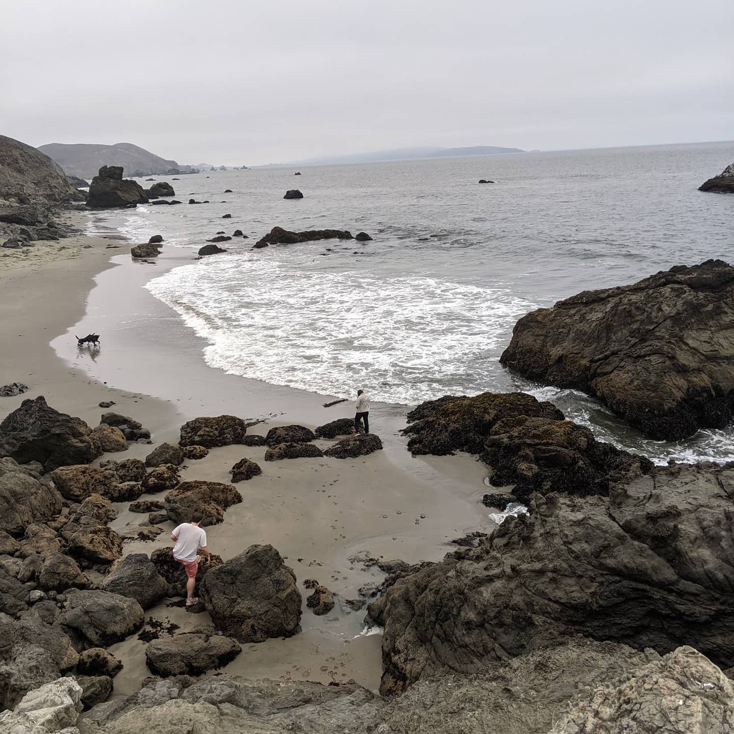 A private beach at Bodega Bay, a sumptuous lunch while getting the car checked out, a long and wonderful walk with Ron and Joanne, and 2 very happy, tired, and dirty puppies after having the time of their lives with us on the beach. It doesn’t get better than that!